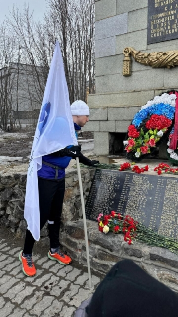 Финиш состоялся у мемориала воинам 6-й Героической Комсомольской батарее. Там участники пробега почтили память погибших минутой молчания и возложили цветы на постамент.